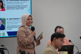 Dalam sesi ketiga Biotechnology Seminar di Fakultas Pertanian UGM, Dr. Kengo Inoue dari Faculty of Agriculture, Miyazaki University, memaparkan peran komunitas mikroba elektrogenik dalam sistem Microbial Fuel Cells (MFCs). Penelitiannya menunjukkan bagaimana komunitas mikroba mampu mengolah limbah cair sekaligus menghasilkan energi listrik.