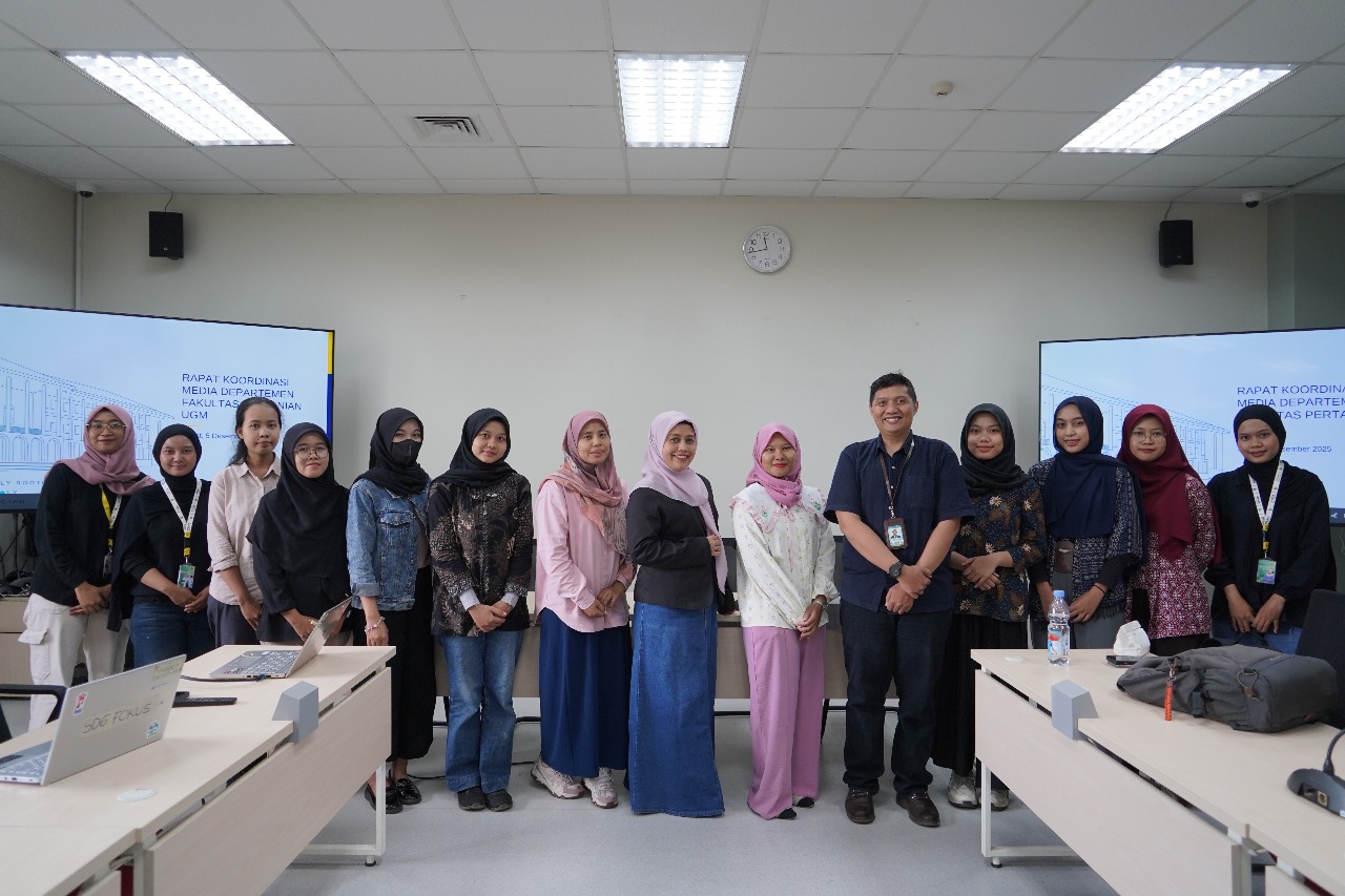 Fakultas Pertanian Universitas Gadjah Mada (Faperta UGM) menyelenggarakan Rapat Koordinasi Tim Media pada Jumat, 5 Desember 2025 di Lab Venture lantai 6, Gedung Agrotropica Learning Center (AGLC), Fakultas Pertanian UGM. Pertemuan ini menjadi wadah bagi seluruh pengelola media di lingkungan fakultas untuk meninjau perkembangan publikasi dan melakukan evaluasi atas kinerja masing-masing tim.