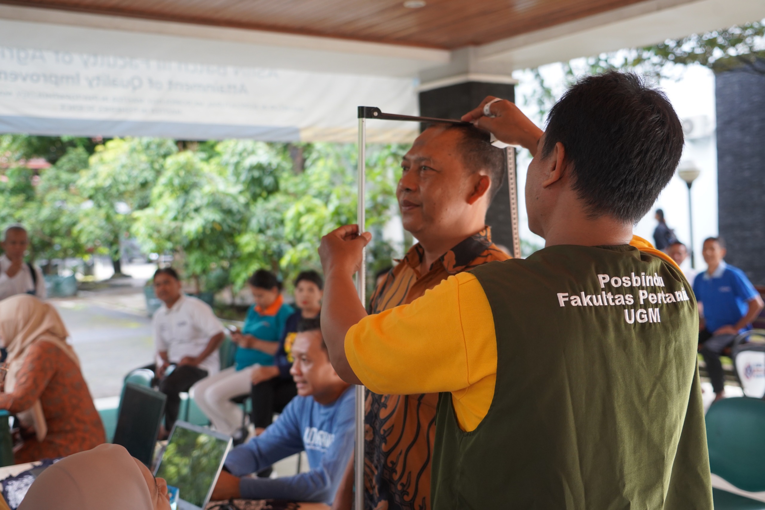 Fakultas Pertanian Universitas Gadjah Mada (Faperta UGM) kembali menunjukkan kepeduliannya terhadap kesehatan sivitas akademika dengan menyelenggarakan Posbindu (Pos Pembinaan Terpadu) pada Jumat, 13 Februari 2026. Kegiatan ini berlangsung di Selasar Gedung A1 pukul 08.00–10.00 WIB dan diikuti oleh dosen dan tenaga kependidikan dengan penuh antusiasme.